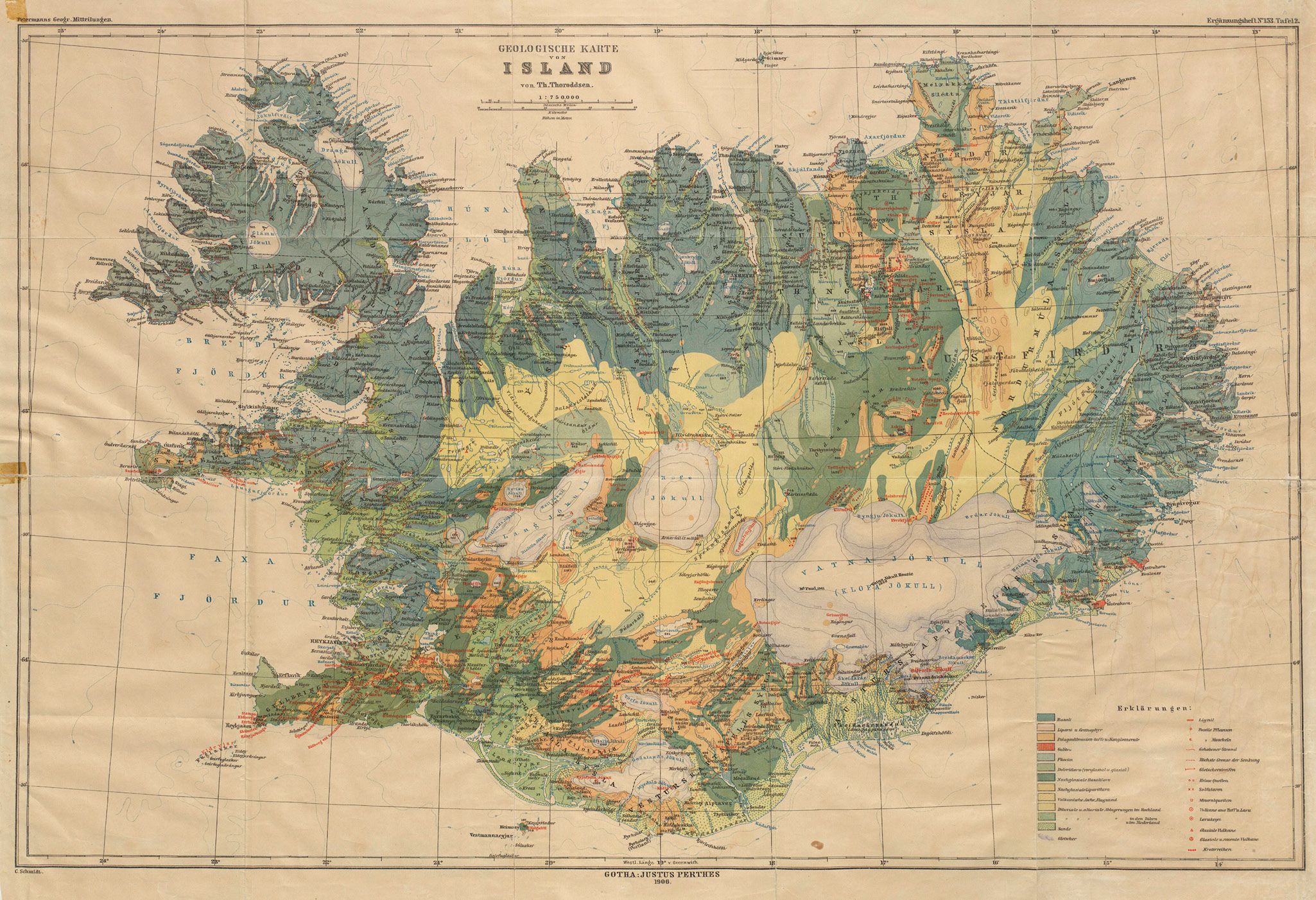 A 1906 geological map of Iceland.