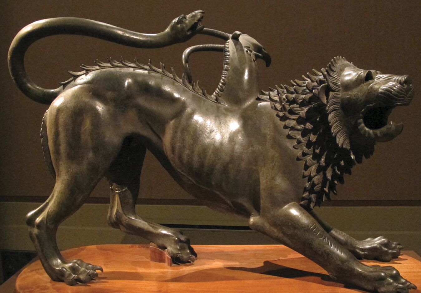 Chimera states are named after the fire-breathing beast from Greek mythology, which is composed of parts of a lion, a goat, and a snake. The bronze Chimera of Arezzo, found in the Italian town in 1553, dates from roughly 500–400 BC.