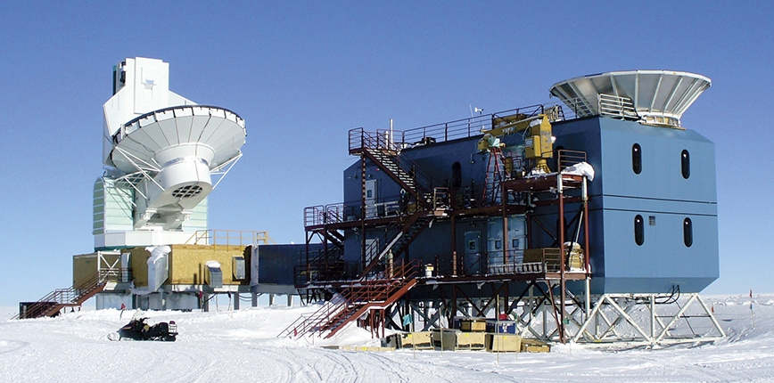 The BICEP2 telescope (right) and the South Pole Telescope (left) at Amundsen–Scott South Pole Station.
