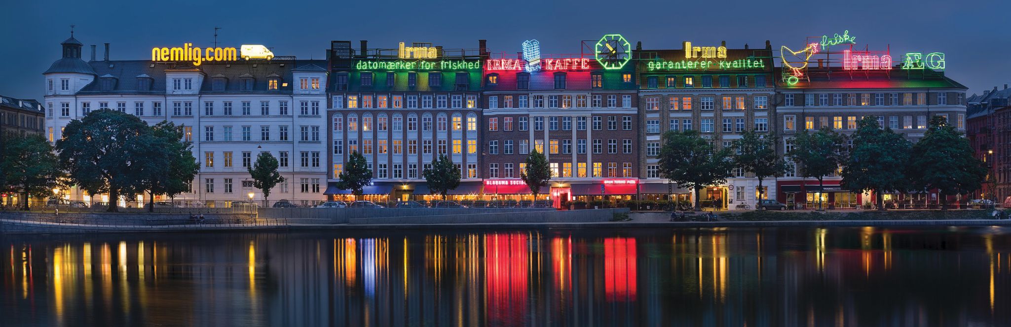 Although the “Copenhagen interpretation” of quantum mechanics may be a postwar invention, the Danish capital was indeed a major site for intellectual exchange during the quantum revolution of the 1920s. Pictured here is the lakeside street of Sortedam Dossering, which features some of the oldest neon lights in the city.