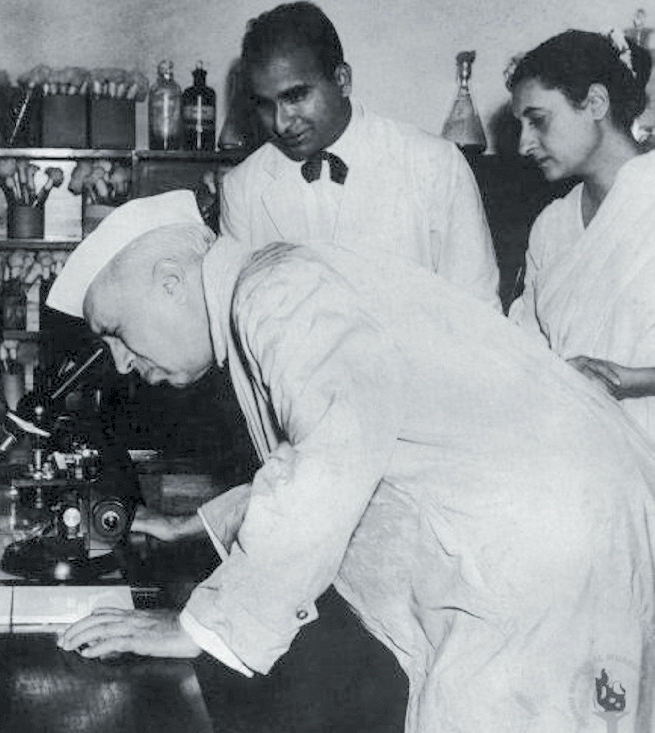 Jawaharlal Nehru, the first prime minister of India, examining a sample of penicillin at a factory in Pune, India, in 1956.