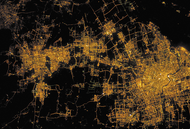 Shanghai at night, as seen from the International Space Station.